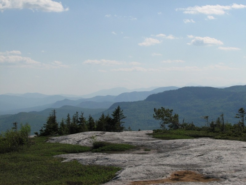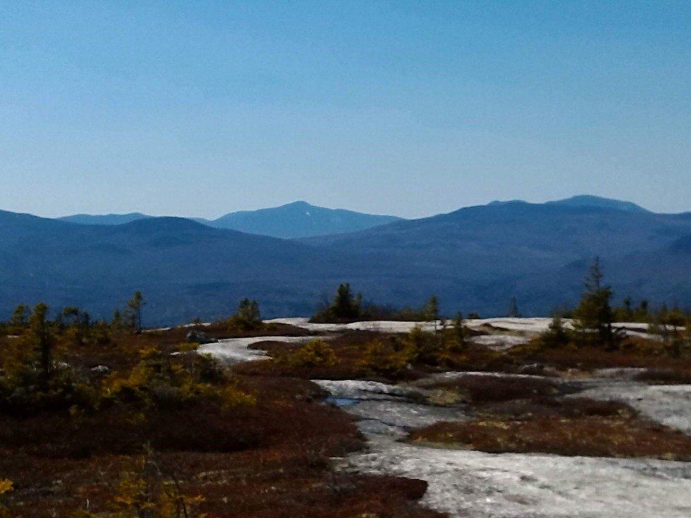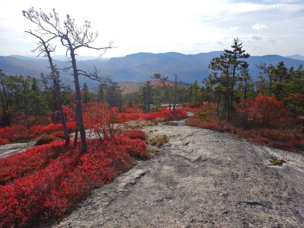 The first third of the trail follows and old woods road, the next third is rooty at first then goes through switchbacks in mixed forest, the final third is walking over glacially rounded granite that is a real joy. Kudos to the Mahoosuc Land Trust for the maintenance performed to the orange trail this year. We ran into the crew rebuilding portions and they did a fantastic job. It was about 10 people and were hired to repair eroded sections. Yes, this is a popular trail, but the steady moderate grade, trail conditions, and views from the top make it worth the crowded parking lot.