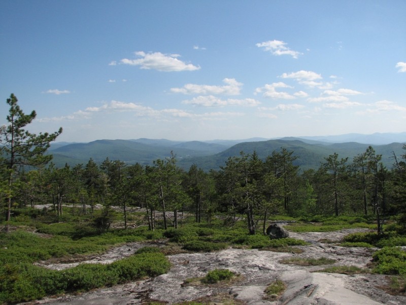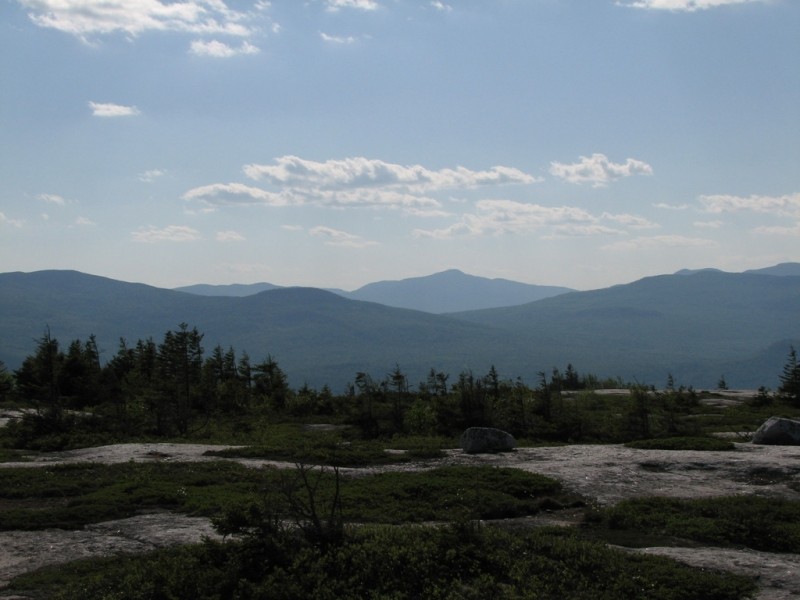 The two trails merge just before reaching the summit. The remaining distance along the ridge to the summit is marked by cairns, orange ribbon flags, and paint blazes. Many points along the hike provide breathtaking views of the surrounding area: the Mahoosuc and White Mountains to the west, Mexico Hills to the east, and Androscoggin River Valley to the south.