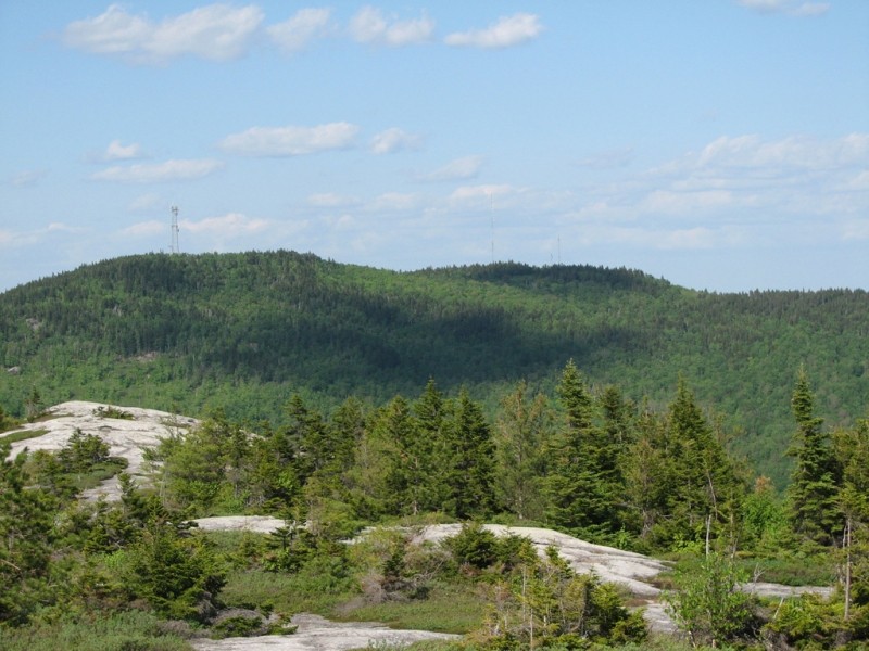 Please note: You may see red blazes continuing from the summit that mark the boundary. Please do not continue past the summit -- these blazes mark private property, not a trail. There is no connection to the Black and White Trail from the summit; the only connection is the one shown on the trail map via the Red Trail (at 44.564156, -70.666314).