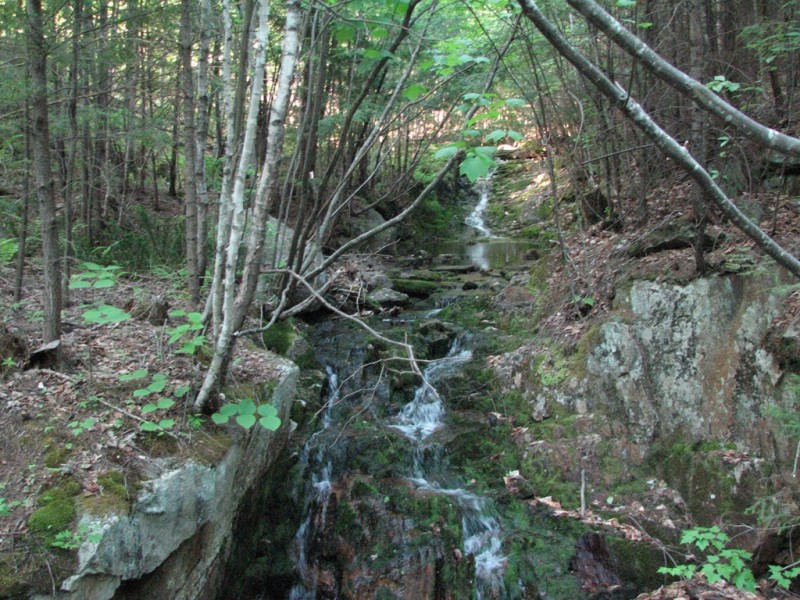 For those who do not have time or the ability to hike to the Summit of Whitecap, going up the Iles Trail (orange) to the Connector Trail and crossing over to descend the Starr Trail (yellow) provides a one mile loop with views of a nice waterfall. Hiking up the Iles Trail (orange) to the Boundary Trail and crossing over to the Starr (yellow) trail again provides a view of some scenic cataracts, when the water is flowing, and completes a two mile loop. Along this trail you may notice some red and some yellow blazes which mark the property boundaries, not the trail. The boundary trail will be marked with blue.
