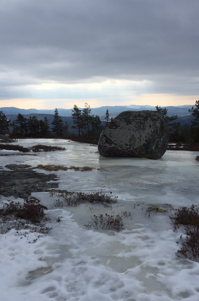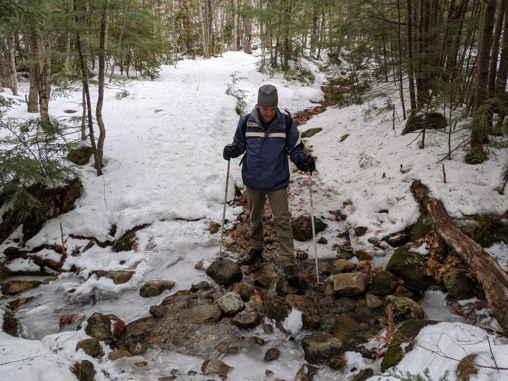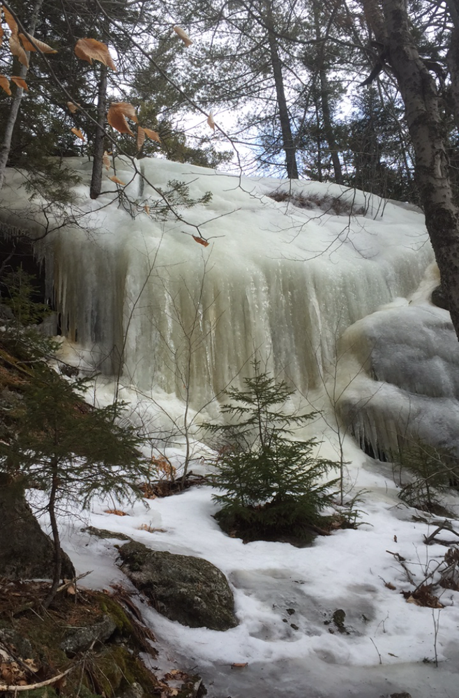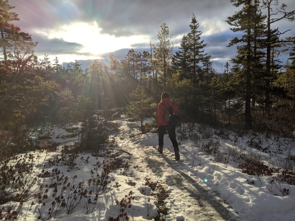 Hiked up the yellow trail and down the red trail. Lots of snow and ice but glad we took yellow trail up. Great view and a pleasure coming back red trail in snow not ice. Looking forward to returning for berries in summer.