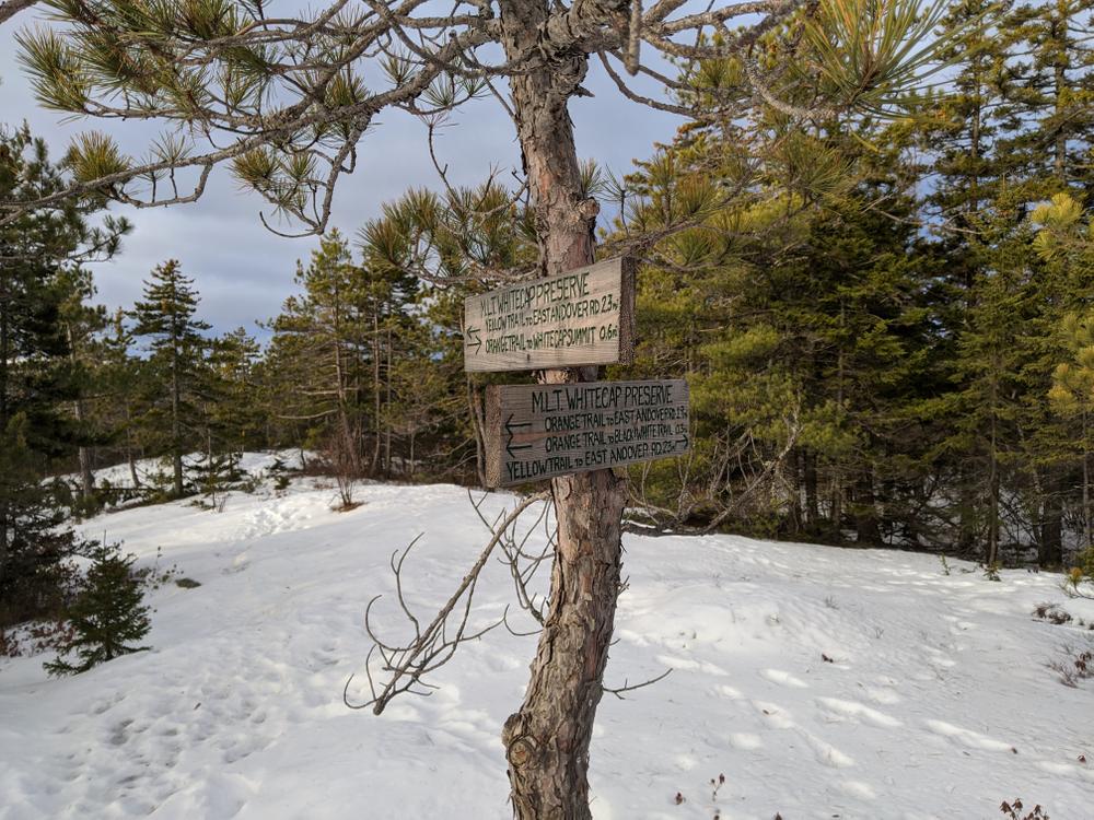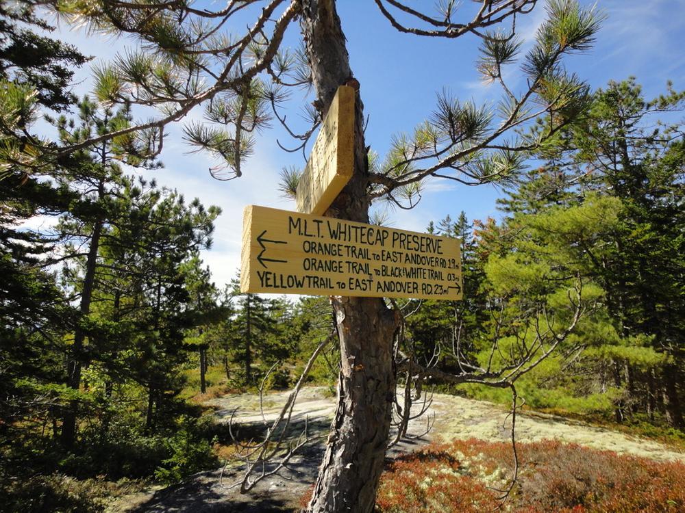 From our friends at Mahoosuc Land Trust: There is no trail from the Rumford Whitecap Summit east to the Black and White Trail. Although it looks possible on the map, hikers cannot safely walk from the summit east to the Black and White Trail. There is no trail, the terrain on the Land Trust property is very steep and unsafe. The surrounding land is private and should not be crossed.