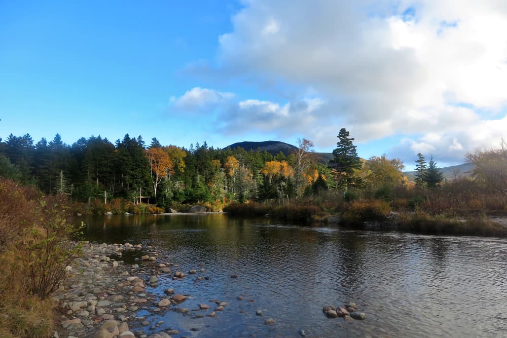 For hikers traveling between Roaring Brook and Russell Pond, the Wassataquoik Stream Trail provides a means of creating a loop and seeing new terrain. The trail is only 0.4 miles longer than the less-scenic Russell Pond Trail, with little elevation gain or loss.