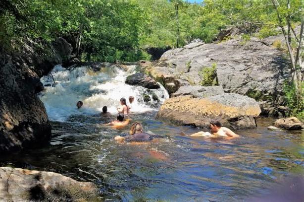 The preserve offers a fun place to swim, slide, and picnic. A short path leads from the parking and picnic area to the cascading falls on the Pleasant River, amid 14 acres of scenic land. From the falls, an additional trail runs both north and south along the west bank of the Pleasant River. Saco Falls is open to public access and recreation, and also serves to protect habitat for the endangered Atlantic salmon.