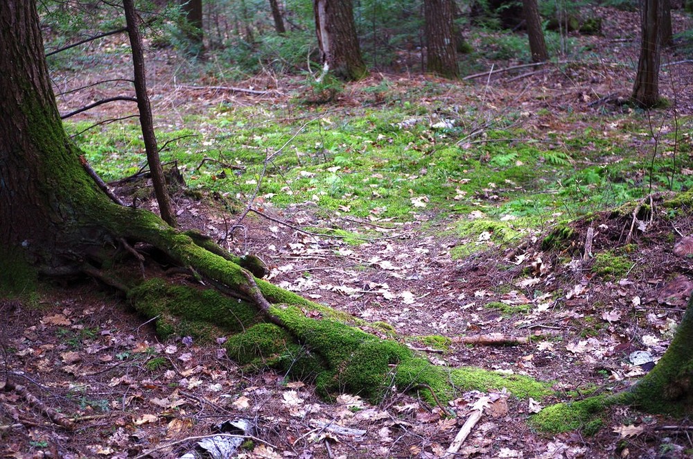 The trail starts off with a gentle slope to a pine forest with a boardwalk over swampy wetlands. The trail merges with an old skid road for a short distance which borders a nearby housing development and then enters a quiet forest. After a short walk, the trail reaches the start of the loop. Hikers can go in either direction. The left trail takes you to a canoe landing where canoeists can leave a canoe and hike the loop. The trail continues and provides several side walks that bring you to the Hay Brook. The loop continues and returns to the split. A short hike takes you back to the parking area.