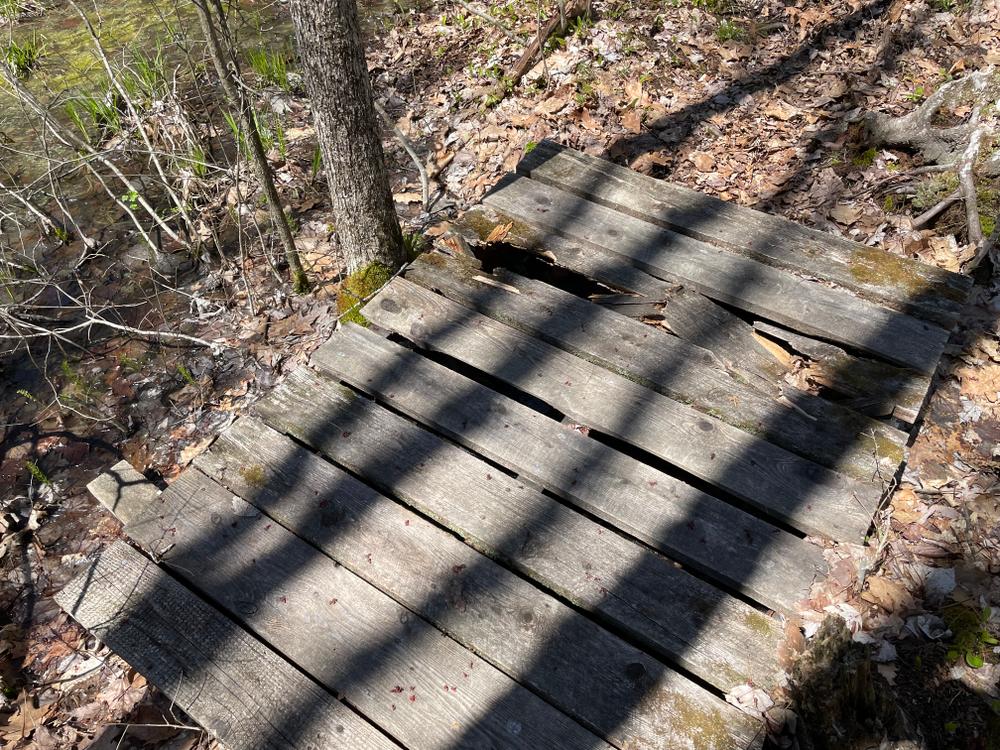 Wood decking “bridges” are in decrepit condition. Watch your step!