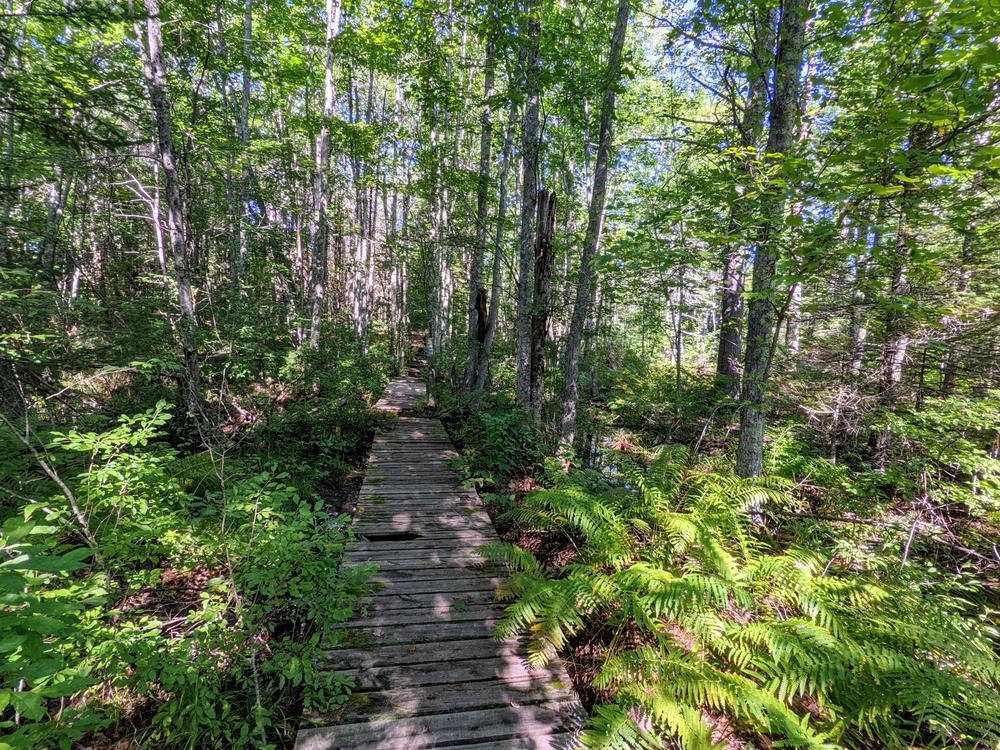 Quiet and peaceful trail for an easy walk in the woods. Trail is a bit overgrown in a few spots and was quite muddy due to recent rains (had to slog through a couple of flooded areas) but it was manageable with waterproof shoes. Boardwalks provide assistance in some of the wettest areas, but watch your step as some boards have rotted out here and there.