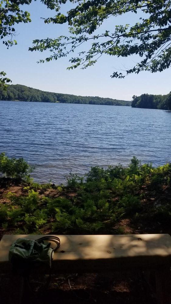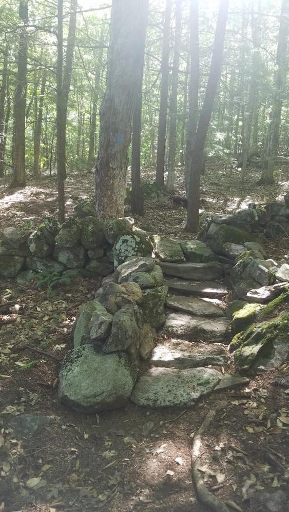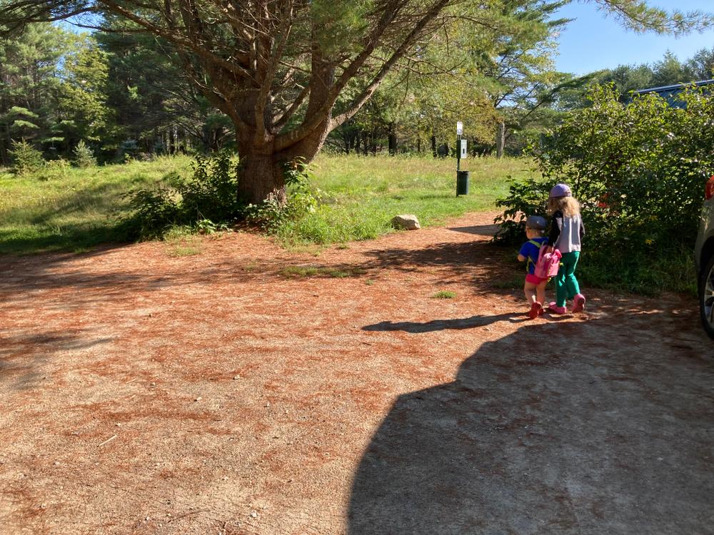 A parallel parking area and trailhead are located on Pleasant Street, approximately 1.5 miles north of Main Street.