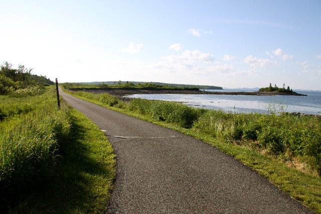 The wide, paved trail includes a panoramic vista of Passamaquoddy Bay, views of the Little River, Gleason Cove, Western Passage, and Kci-peskiyak, a salt marsh pond which is also a traditional gathering area for sweet grass used by Tribal artisans. The eastern end of the Sipayik Trail offers spectacular views of First and Second Island just off the coast and, across the bay in New Brunswick, of St. Andrews and Deer Island.
