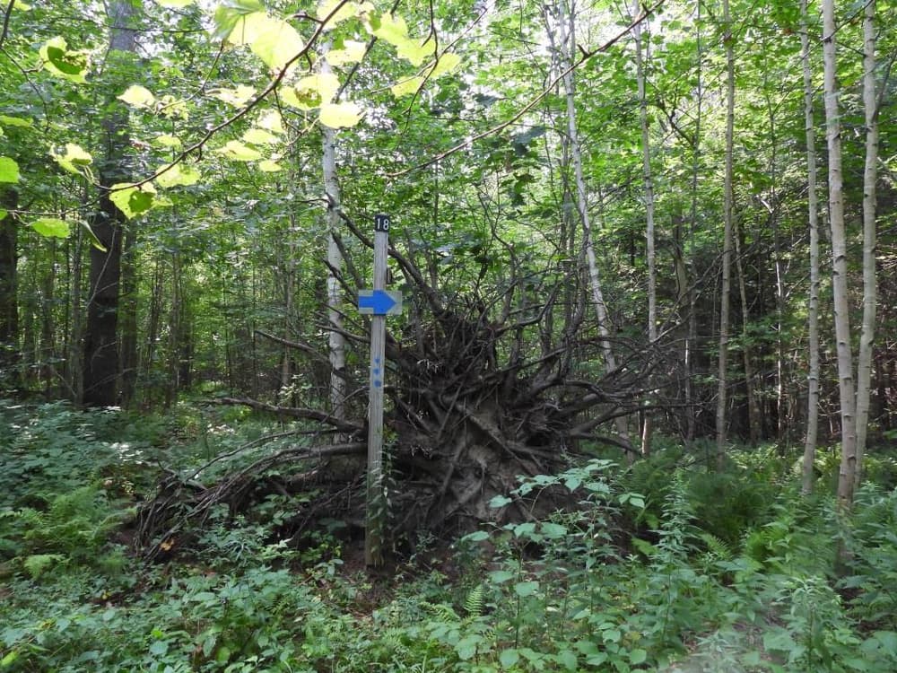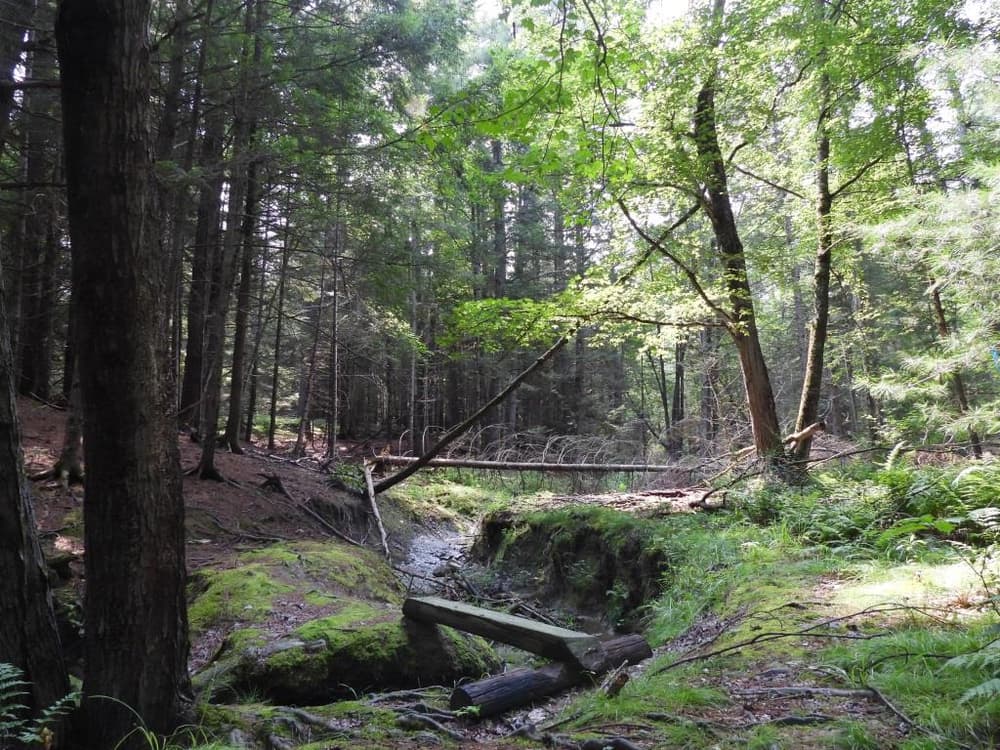 A 90-acre property owned and maintained by the New England Forestry Foundation, the trails lead around some recent cuts that thinned out some of the pine and hemlock.