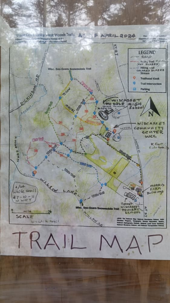 At the intersection of US-1 and ME-27 in Wiscasset take US-1 south about 0.1 mile. Take the first right onto Churchill Street, drive about 0.4 miles and then take the first left onto Willow Lane. The forest is about 0.8 miles on right.