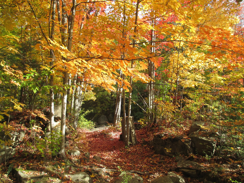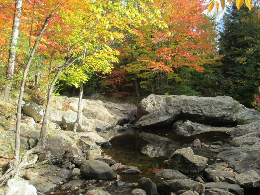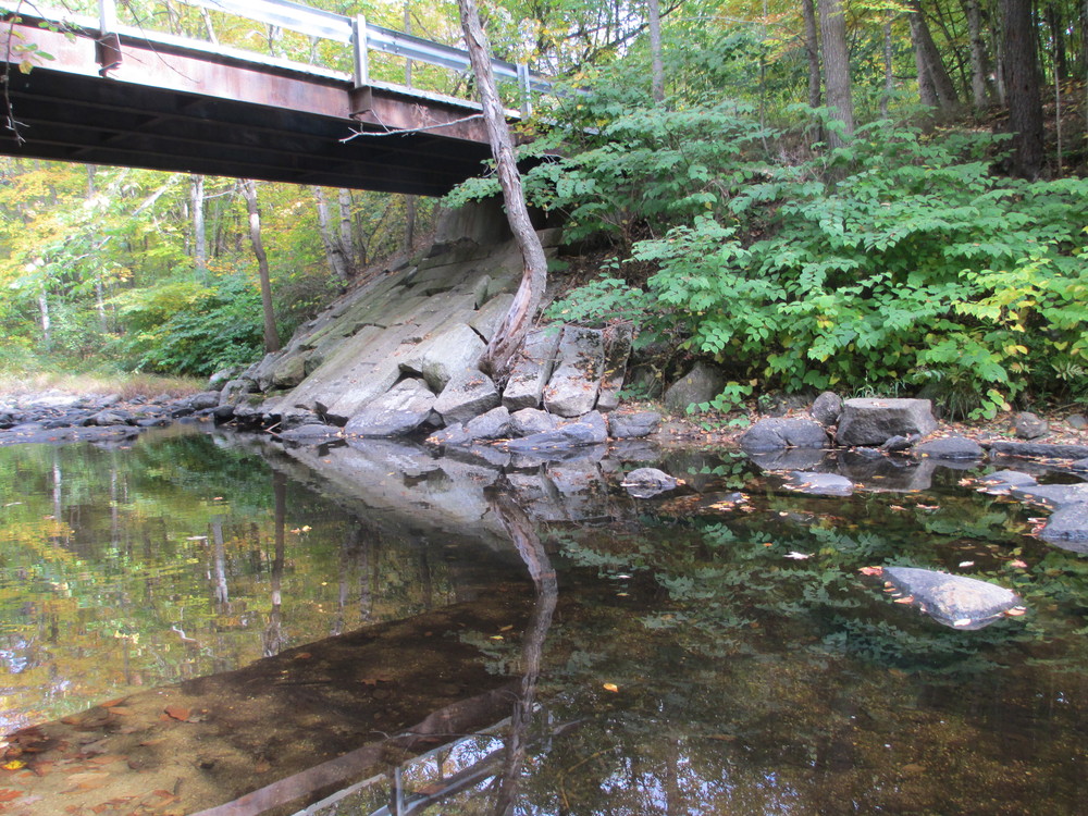 Stony Brook Trail accesses a series of pools and small falls with large flat ledges that are dry and sunbaked at moderate flow levels. This is a popular local swimming hole and picnic spot. The trail continues above the falls and goes under and over an abandoned auto bridge before ending at private property.