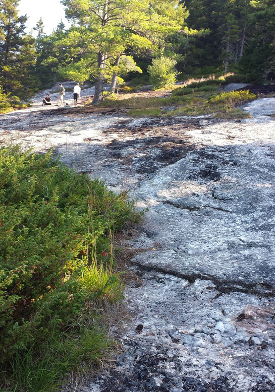 From the road, the first quarter or so of the hike is wooded and with loose rocks. The remainder of the hike is on the steep granite face of the mountain. The trail rises about 700' in its short half-mile ascent. Be especially careful of footing in wet weather when the granite becomes slick and autumn when the leaves obscure the loose uneven footing on the lower section.