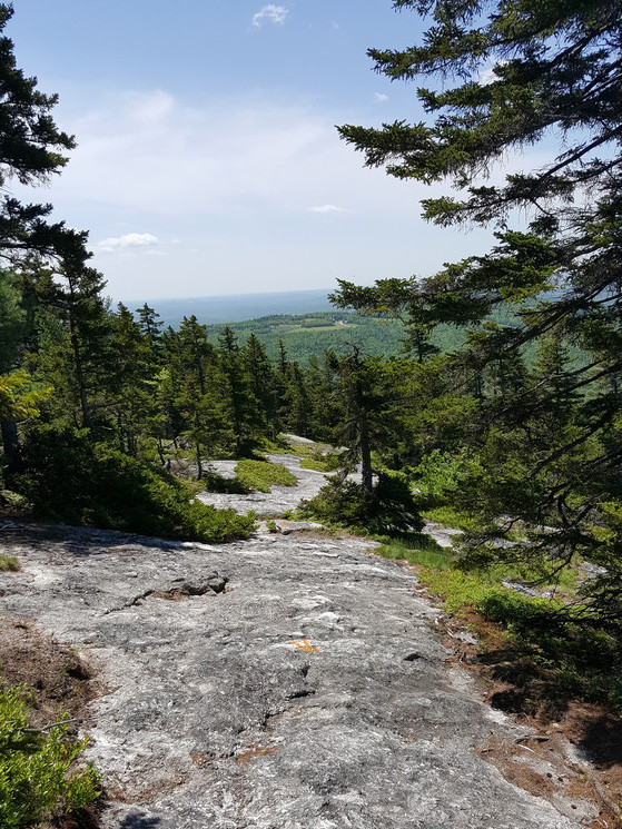 This is a challenging but rewarding hike. Once on the granite slope, the hike is one continuous scenic view of the Little Androscoggin River Valley, the Oxford Hills, the White Mountains, and on clear days, the Presidential Range.