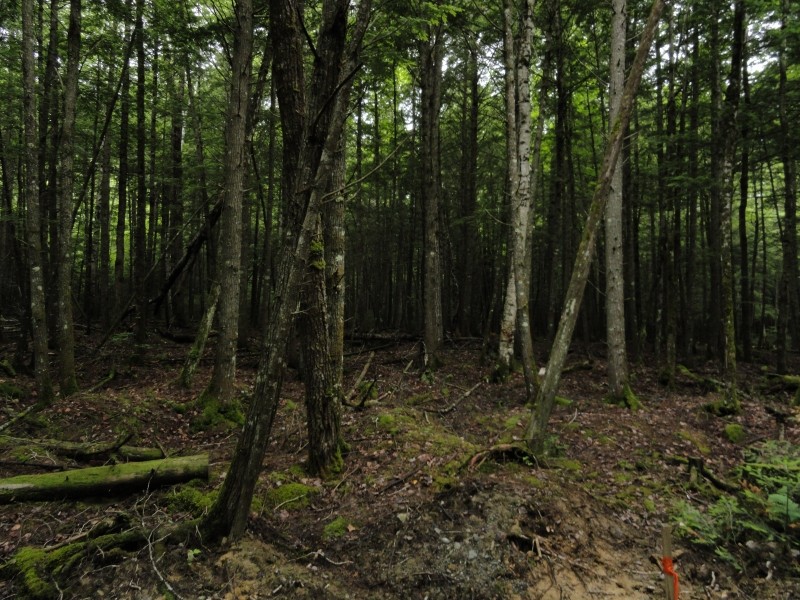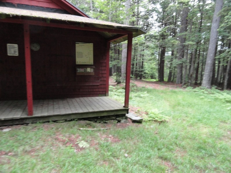 Starting as a gated road off Country Road just west of Little Birch Stream, Carter Meadow Road winds back through pine forest passing two private camps before ending at old ranger station with a kiosk and information panel about the refuge and trail.