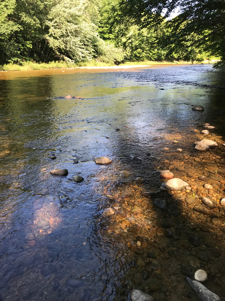 The Swift River Walking Trail is a paved walkway that meanders through a young deciduous forest. The paved surface of about six feet wide is suitable for strollers, wheelchairs, and others with mobility challenges. The trail parallels the Swift River offering many beautiful views from the river's banks, and it provides a calm getaway from the athletic fields. Distance markers keep users informed on how far they have traveled along the path.