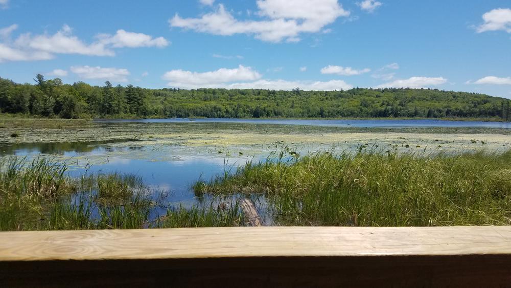 The Torsey Pond Trails may be accessed from the trailhead in the parking lot. This trail network extends for just under 2 miles and abuts the shore at several points.