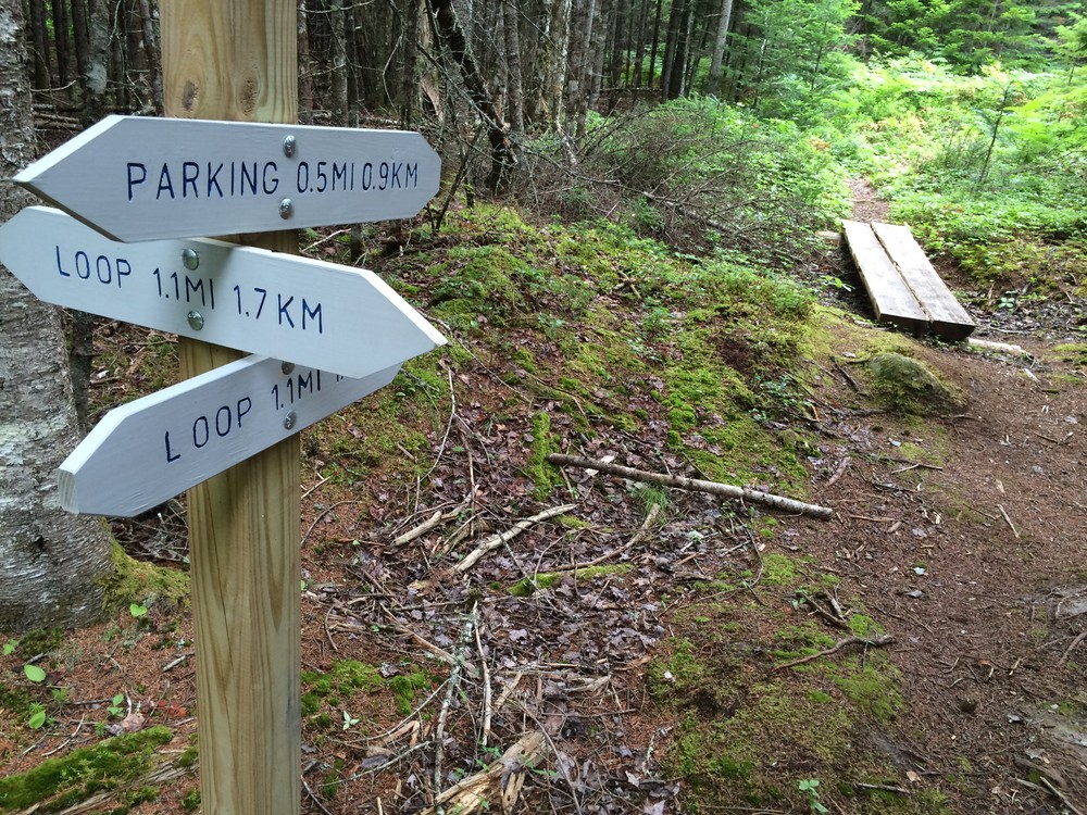 Town of TrentonThe trail is located behind the Acadia Gateway Center at 685 ME-3/Bar Harbor Road in Trenton. The Gateway Center access road does have a small sign, but it is more easily recognized as a newly-paved road with prominent street lights on the west side of ME-3, near J&P’s Farm Stand. Follow the access road past the Gateway Center maintenance building to the farthest parking lot where the trailhead and kiosk are located.