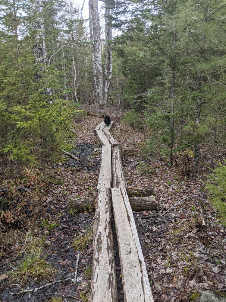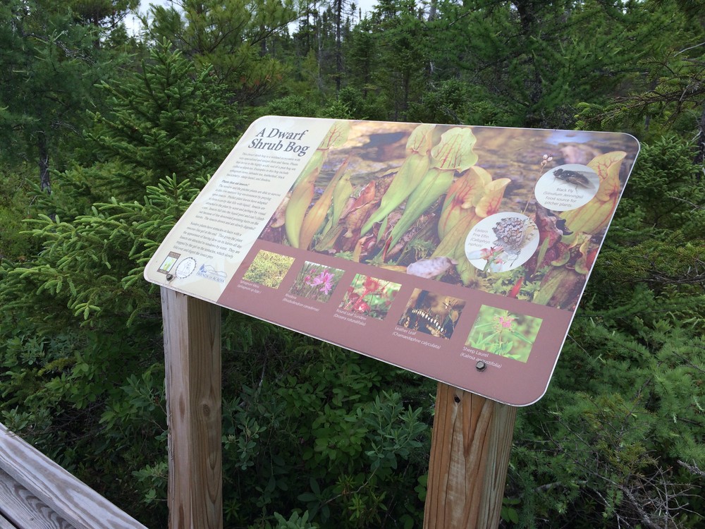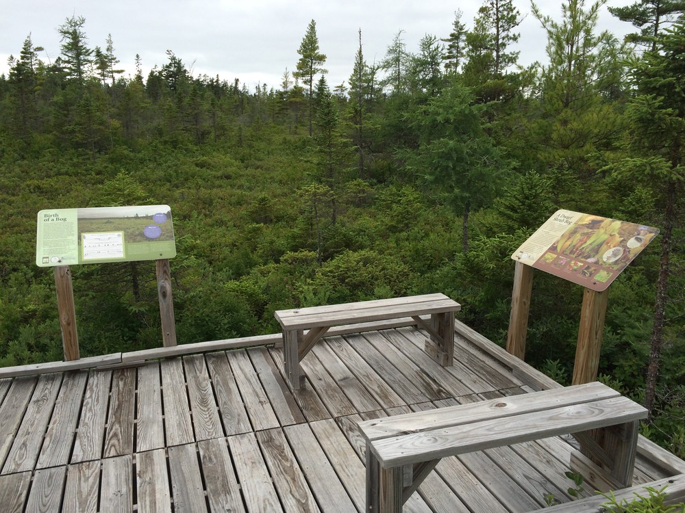 This natural-surface trail loop includes bog-bridging, a boardwalk, three bridges, and a viewing platform at the heath, along with interpretive panels that point out natural and historic features of the trail. Many benches along the way allow hikers to enjoy a peaceful moment on this quiet trail. There are also small species signs which identify the flora of the trail. The dwarf shrub bog area is sensitive; please stay on the boardwalk and viewing platform.