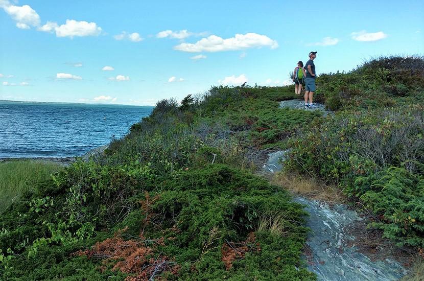 Trundy Point represents some of the best undeveloped rocky headland habitat for which the Cape Elizabeth landscape is known. The short trail loops from the beach over bluffs to a rocky promontory jutting into the ocean. It provides expansive views of Casco Bay, including the opportunity to view five lighthouses from atop this rock outcrop. A prime spot for birding, the wave-battered rocks offer the chance to see uncommon and beautiful seabirds such as guillemots, razorbills, long-tailed ducks, and harlequin ducks. The sheltered pocket beach is ideally situated for picnicking and swimming.