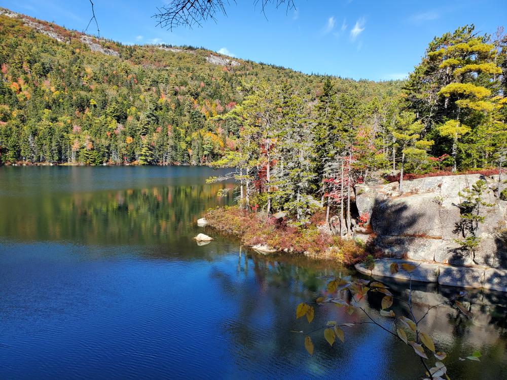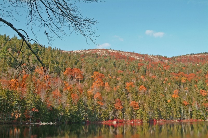 The second (northern) intersection of the Tunk Mountain and Hidden Ponds Trails is only a short walk from the first intersection. Hikers looking to avoid the mountain hiking may choose to walk north on the Tunk Mountain trail a short distance (~0.1 mile) to fishless Mud Pond, a small acidic pond carved into the craggy side of Tunk Mountain. It is approximately 0.6 miles from Mud Pond back to the trailhead parking area.