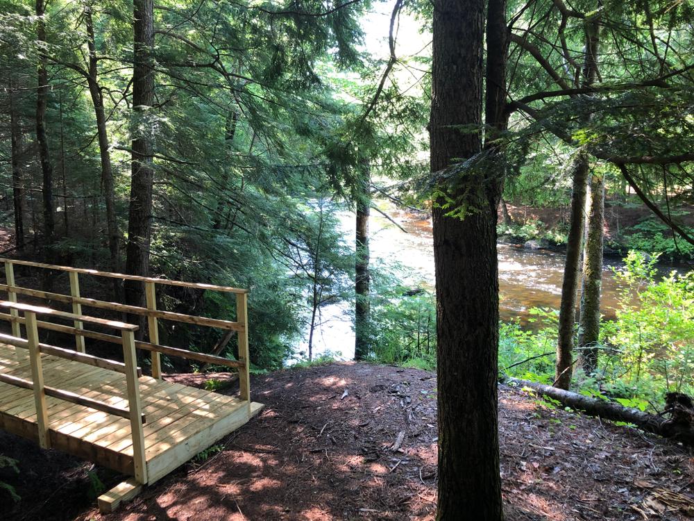 Many short, wooded trails offer unlimited options for exploring this property. From the parking lot, the Pierce Trail heads south, paralleling the river for 0.15 miles before coming to the junction. To the right, a short spur, the Pottle Trail, leads to a view point along the river; the Pierce Trail continues to the left, giving access to the rest of the trail network. From the Pierce Trail, five other trails cross the property to the trail on its east boundary, the Holden Loop. The 0.4 mile Harkins Trail, the first right after the Pottle Trail, heads to and then along the river before meeting back up again with the Pierce Trail.