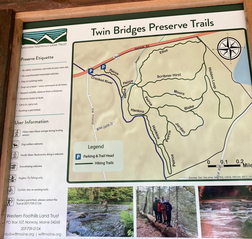 The Twin Bridges Preserve is one of many preserves that are a part of the Crooked River Forest. WFLT continues to partner with other organizations to protect lands in the Crooked River watershed, with an over-arching goal of protecting a forested watershed for a variety of ecosystem services including water quality. Over 200,000 households, 1/6th of Maine, rely upon clean drinking water from the Sebago Lake Reservoir, which is fed by the Crooked River and other tributaries within the greater Sebago Lake Watershed