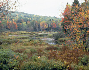 Harper's Meadow includes an open water channel oriented roughly north-south (actually an extension of the Mile Long Pond), and an extensive area of marsh and bog between the channel and the Androscoggin and Magalloway Rivers. Moose often forage in the shallows, especially in early morning and evening, and several osprey nests are visible against the skyline to the east. Common loons, common goldeneye, as well as ring-necked, wood, and American black ducks may be encountered either swimming or overhead. American bittern, common snipe, and northern harrier all breed in the marsh, and are readily seen by patient and alert observers.