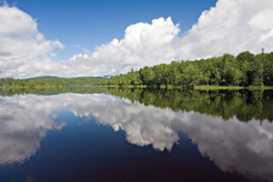If time permits, one can paddle northeast from the central channel to Leonard Marsh. This excellent wildlife area supports nesting waterfowl, ospreys, northern harriers, American bitterns, and migrating shorebirds in spring and late summer. Loop routes are possible using some combination of the lake and the east and west channels of Leonard Pond. While it is slightly less confusing to find the Androscoggin River than the Magalloway River for the return trip (go south on any channel until you can follow a major channel due west), those unfamiliar with the area should consult a map to successfully navigate around and out of the Leonard Pond complex.