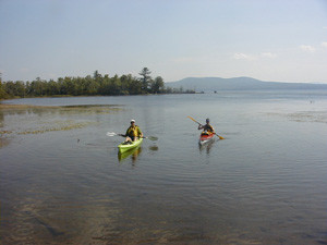 One popular route makes a loop into the lake from the Androscoggin River, north along the lower island, and into the central channel of Leonard Pond, just northwest of Eagle Island. The loop continues west through a narrow channel into the Magalloway River, then downstream to the Androscoggin.