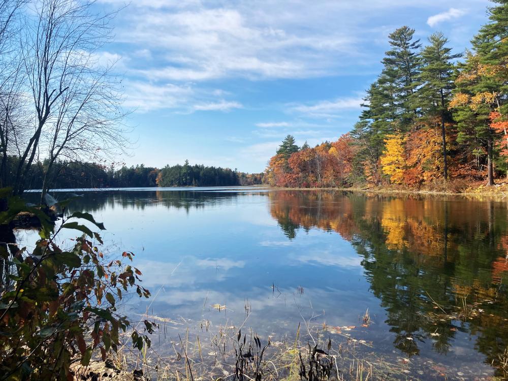 A short trail leads to the edge of Cobbossee Stream.
