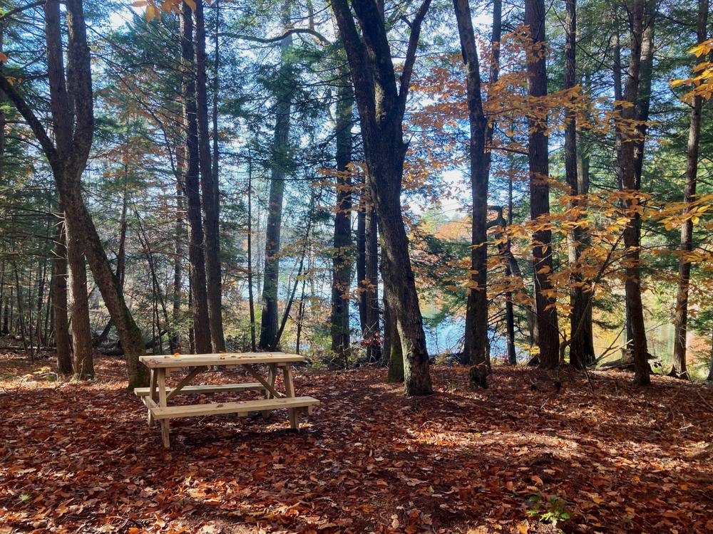 This short trail travels about a half-mile through coniferous-deciduous forest down a gentle slope to the shore of Cobbossee Stream. There is a picnic table at the trail's end from which to enjoy the views of the stream.