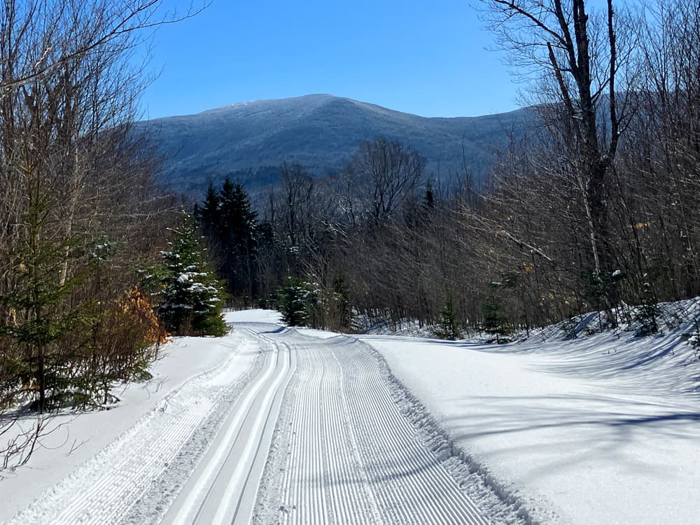 These beautiful and well-maintained groomed ski trails can be enjoyed own their own, or as a part of a larger adventure connecting to AMC's nordic ski trail network via the East Side Road groomed trail.