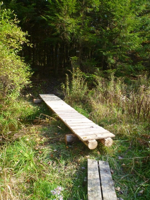 Joe's Trail (1.5 miles) is accessed from the east side of Tracy's Mill Loop. Consisting mostly of two short loops connected by a spur, Joe's Trail winds up and down hills to scenic overlooks of the West Branch. On a clear day, the Camden Hills are visible from the power line clearing.