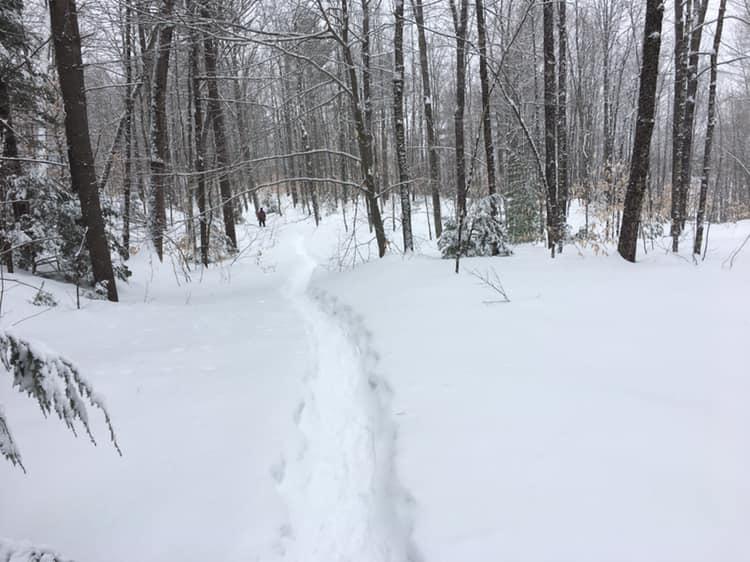 In the winter, the trail along the river, as well a half mile portion of the trail in the wooded area, is groomed (but not tracked) for snowshoeing and skiing. Apart from the groomer, no motorized vehicles are permitted on any of these trails. There is some parking along Weston Avenue, where the trail crosses the road, but it is limited.