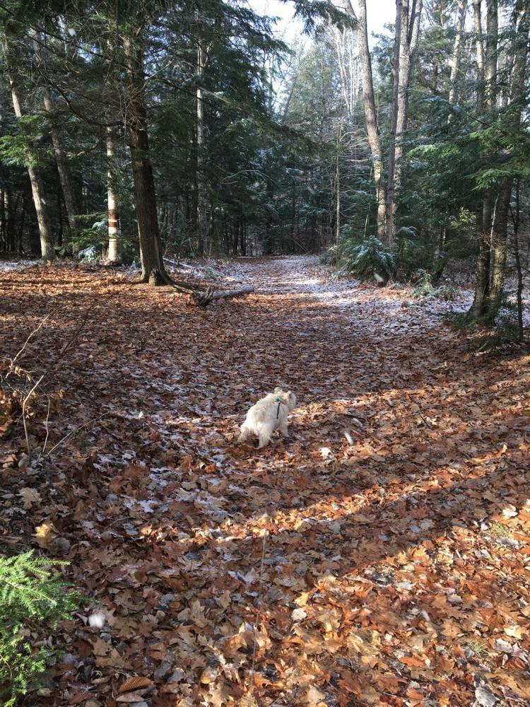 After crossing Weston Avenue into the woods, an expanding network of trails roams throughout the wooded peninsula, currently about 3 miles of trails. There are views of farm fields protected by an agricultural easement held by Maine Farmland Trust, and upriver views of the Kennebec River and Weston Island. The trail passes the remnants of the old Weston family burial ground, cellar holes, and other historic artifacts. Weston Woods is well suited for hiking and trail running.