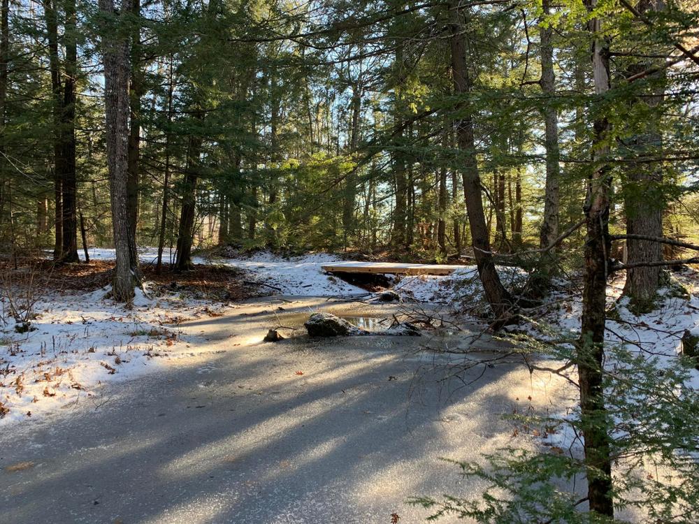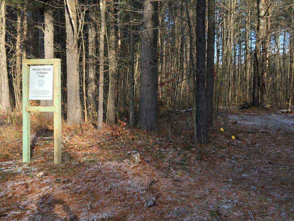 A new trailhead with parking is under construction (summer of 2022) on Park Street (ME-43), providing access to the full trail system via the Weston Woods Loop and Orange Trails.
