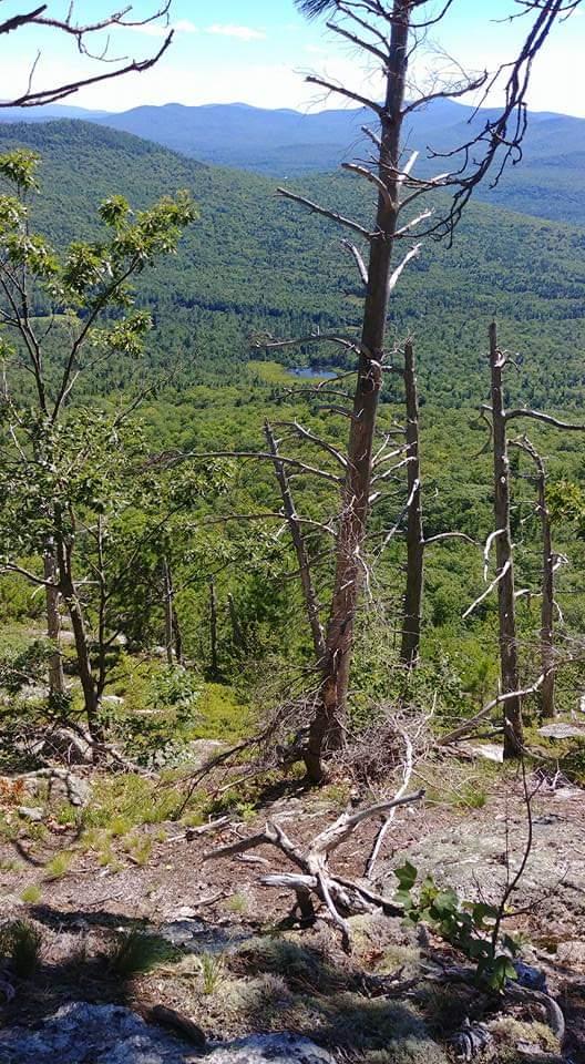 The Mud Brook Trail leaves the south side of the parking area and follows Mud Brook along an old woods road, ascending gradually for 1.7 miles. The trail then turns left, crosses Mud Brook several times, and begins to climb steeply over a small bare knob. It then descends to a small ravine, crosses ledges, and then reaches the summit of Caribou Mountain at 3.0 miles. Rock markers (cairns) clearly direct hikers over the rocky summit. The trail intersects with Caribou Trail at 3.6 miles allowing hikers to make a 6.7 mile loop back to the trailhead on ME Route 113.