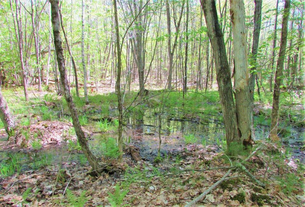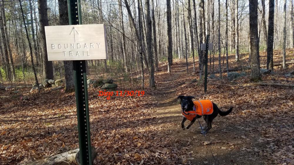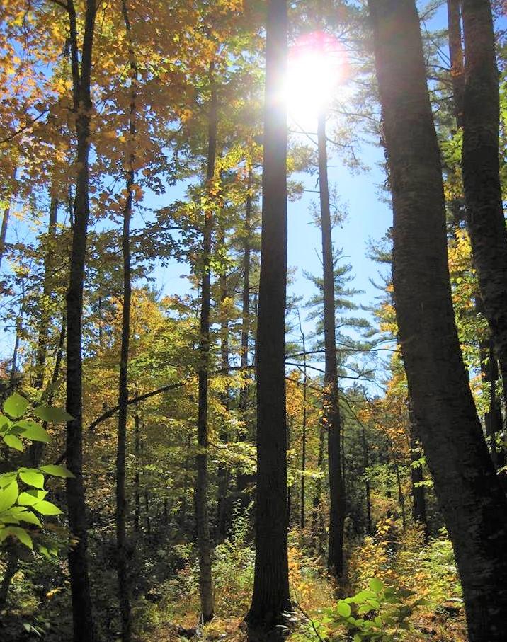 This 0.9 miles trail goes up hill and down across some wet areas, and passes a vernal pool. It follows a small brook, and large white pines, maples, and oak trees can be observed. The walker can see the regrowth of the forest resulting from the harvest of 2009-2010.