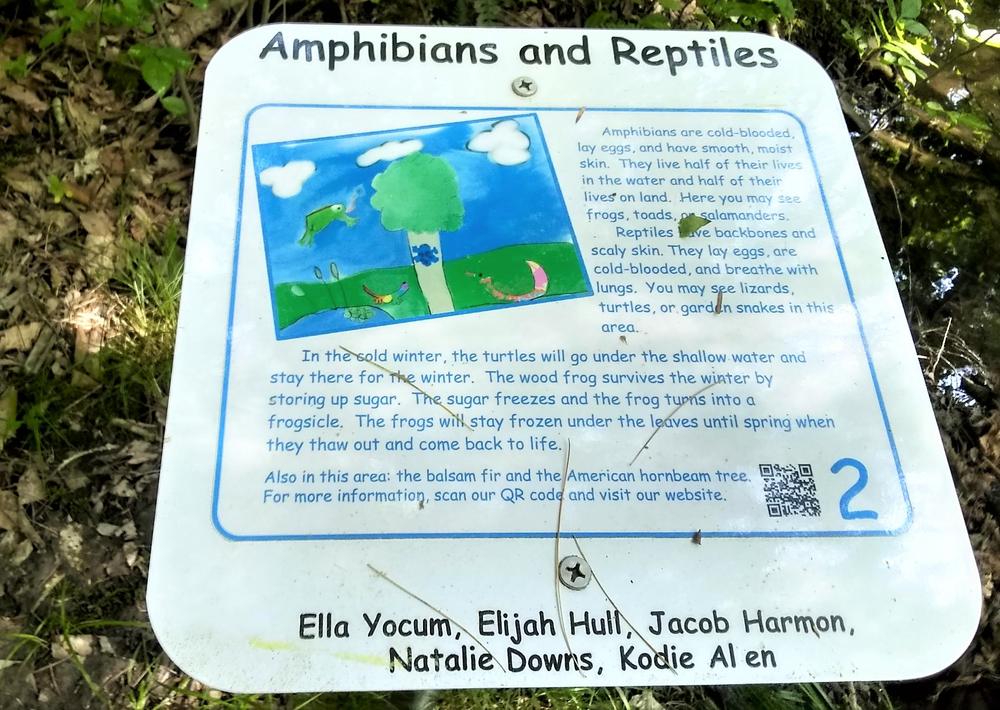 This trail is about 0.6 miles on a gentle sloping path, travelling through several mini-ecosystems. Signs along the way provide information about the surroundings, created by Cottrell School second grade students during the school year of 2016-17.