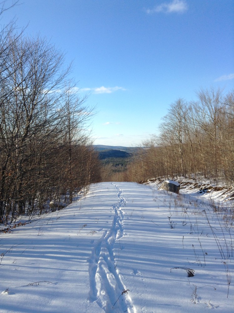 Mead Mountain Trail (0.7 miles, easy to moderate; gravel multi-use trail): On this gently rolling trail edged with raspberries, you will cross over Hopkins Meadow Brook and come to an end at a log landing.