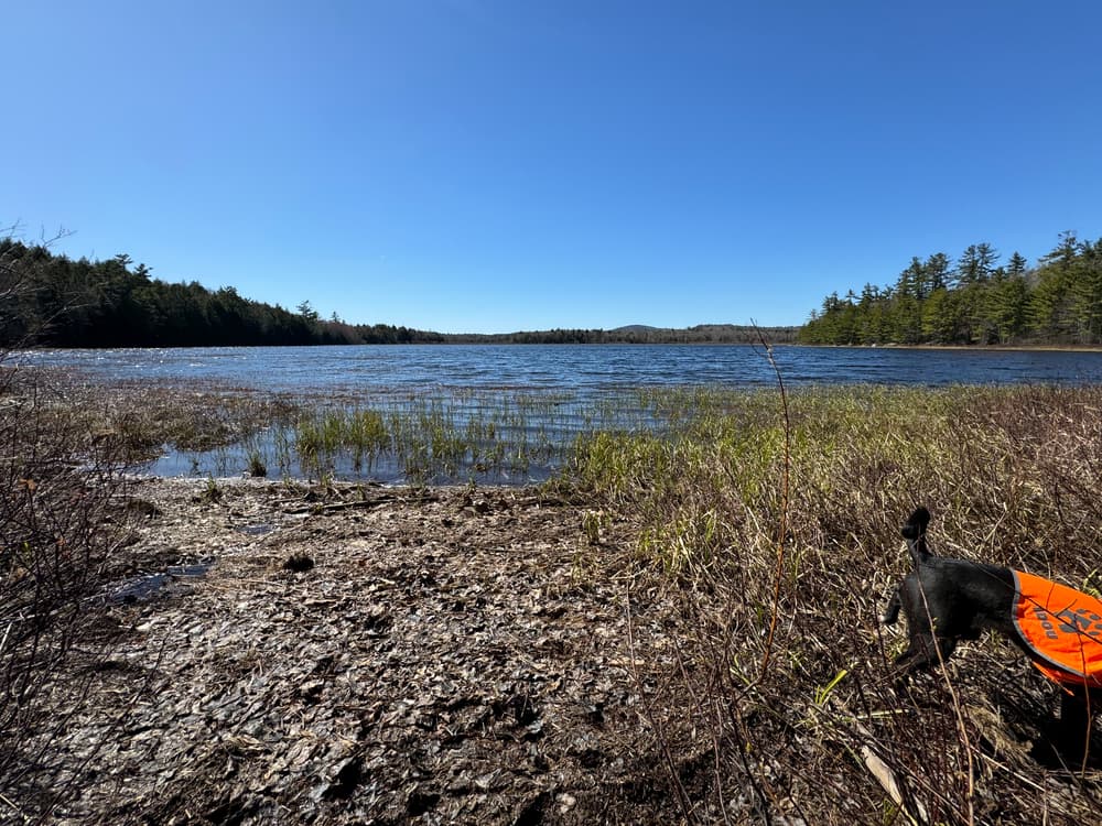 Hothole Brook Trail (0.8 miles, moderate; gravel multi-use trail): On this rolling trail you cross a bridge over Hothole Brook, which will bring you to gorgeous views of Great Pond Mountain as well as views looking back to the east over Hothole Valley. The trail ends in a big clearing, after passing large, interesting boulders and red pines on the last section. At the clearing, peer to your left for a look at a large boulder field.