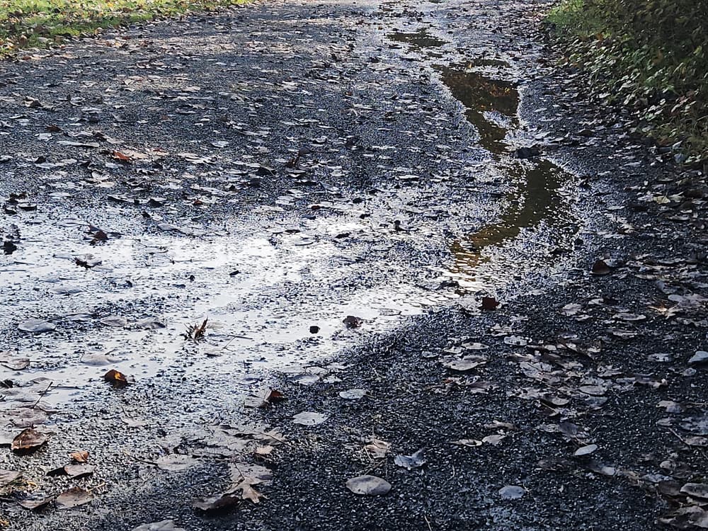 These school and community trails are a great place for an outdoor classroom, a daily jog or stroll. The hard-packed surface with slopes generally under 3% is suitable for strollers, wheelchairs, and those who use mobility assistance equipment. It's a wonderful place to learn to ride a bike. The trails are typically about 8 feet in width with a couple of spots that narrow to 3 feet through the woods. There are rocks placed at the trailhead with 7 feet between them. The hard-packed gravel surface does not have roots or rocks except for one spot of roots, which could be easily navigated over or around by most. There is a section of trail that sometimes gets flooded in wet weather, effectively cutting the width of the trail in half.